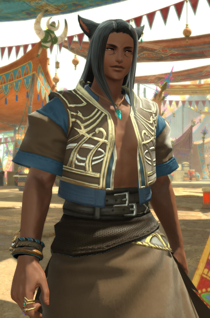 Natáyo's tribe is like any other hhetsarro tribe, following their hhetso, which in their case is the rroneek. They travel with the herds, hunting and gathering as needed, moving every so often among the plains of their home.Occasionally, they'll make it back home to revisit their family, but for decades they've traveled the length and breadth of Tural and beyond in the hunt for vidraal and other dangerous beasts that might cause havoc in their wake, their husband at their side as their lone, stalwart companion.An uncommon face just about anywhere, if there's a monster that needs eradicating, he won't be far behind.
